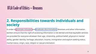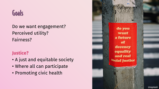 To think about how these systems can promote community, belonging, inclusion, equity, etc., both in the system and its use and its operation itself, and also how information systems and information access systems may contribute to or hinder those values in society at large.